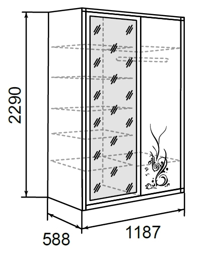 Шкаф-купе для одежды с зеркалом двухдверный 1187х588х2290