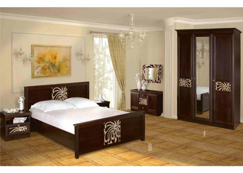 Спальня «Инна» – выпускается с 2010 года и продолжает серию классической модульной системы «Инна». Изюминка данной модели заключается в том, что рамочные фасады из МДФ, присущие классической мебели украшает фрагмент рисунка стилизованного цветка, выполненного в современной технике.