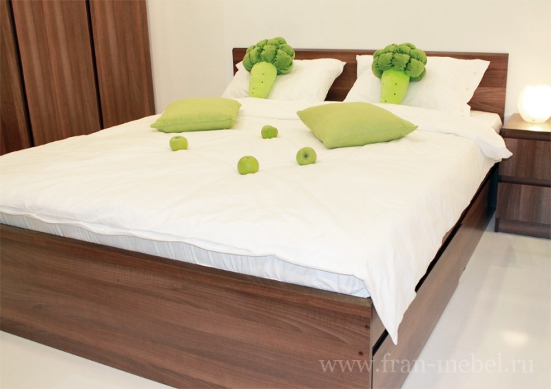 «Долорес» Новая спальня от лучшей фабрики! Благодаря эксклюзивной текстуре дерева, орех аида, ваша спальня наполнится теплом и уютом. Обратите внимание, что на модулях нет не единой ручки для открывания дверей и выдвижных ящиков, все это благодаря оригинальному софту на фасадах.