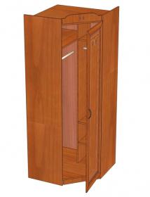 -за распашной дверью шкафа находятся две вместительные ниши: меньшая - с 3 полками и штангой, большая - с 1 полкой и штангой для одежды