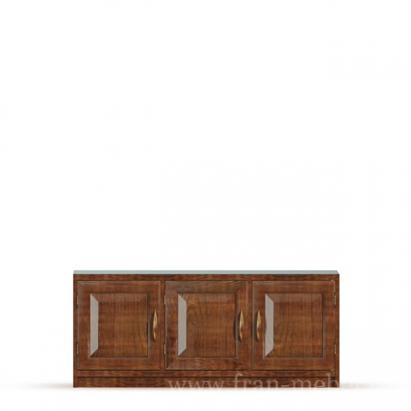 Трехдверная тумба из шпона ясеня. Комплектуется тремя полками. На тумбу можно поставить телевизор с диагональю до 56 дюймов. Задняя стенка в цвете ясень беленый.
