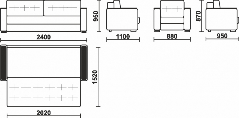 - Посадочное место (Кресло): пружинный блок, геовойлок, листовой ППУ, синтепон.
