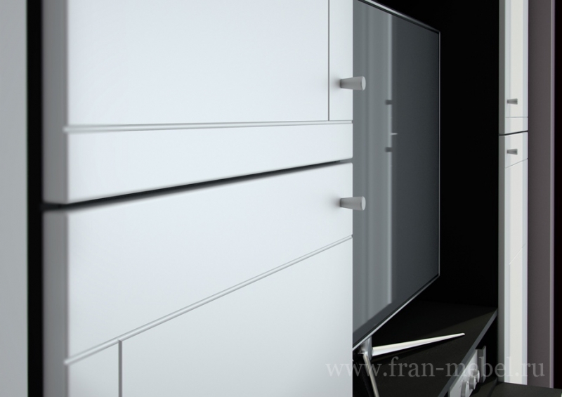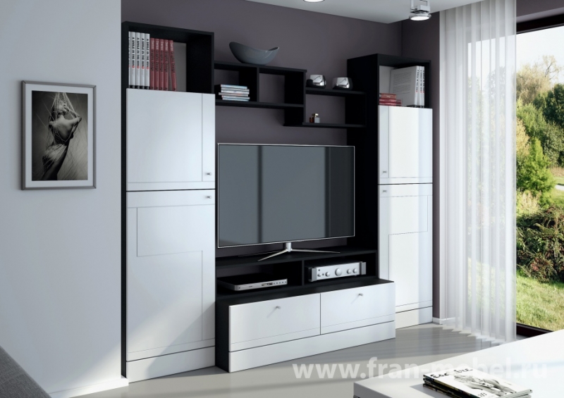 Стильная и практичная стенка для гостиной длиной 2,2 метра. Состоит из двух пеналов с оригинальными фасадами, тв-тумбы с надстройкой для телевизора диагональю до 46 дюймов и одной полки произвольной конструкцией. Корпус выполняется из австрийской ЛДСП в цвете дуб феррара. Фасады из МДФ в цвете белая шагрень.