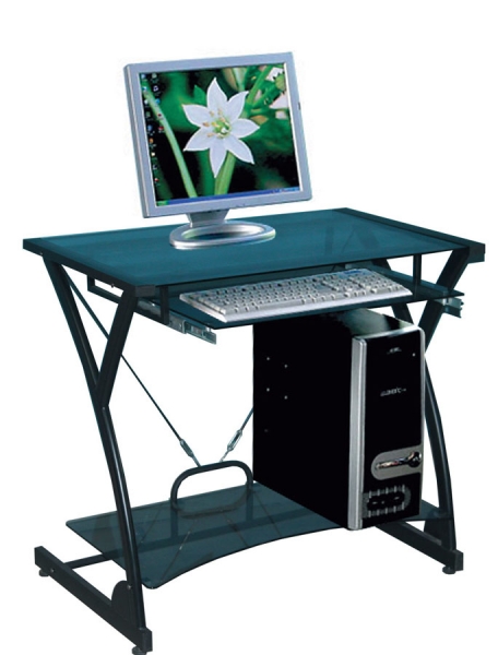 Компактный стеклянный компьютерный стол. Прочный металлокаркас и тонированное стекло толщиной 5 мм.