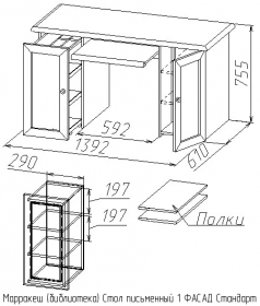 Библиотека Марракеш Стол письменный-1 фасад Стандарт (1392х755х610)